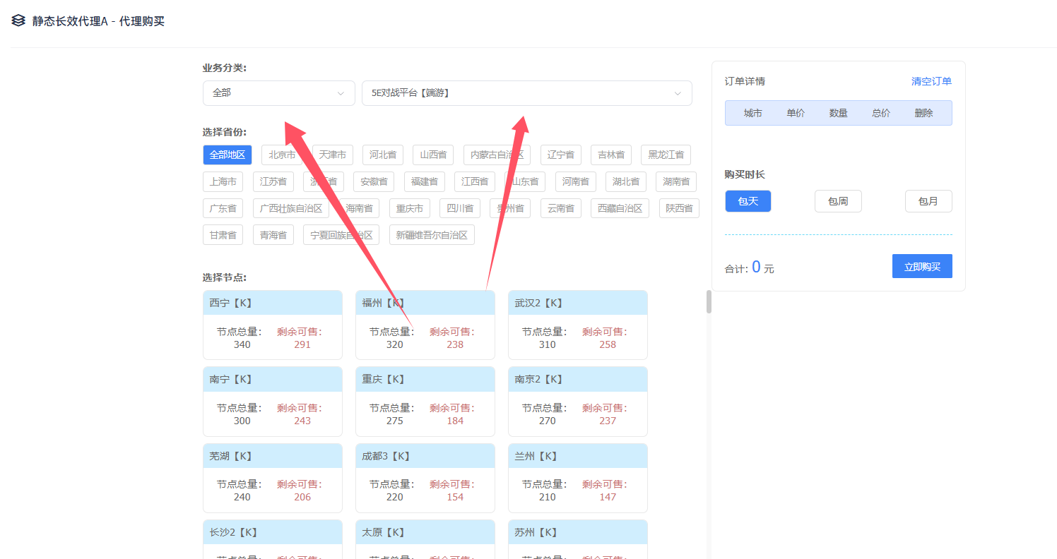 第三步:选择业务-地区-数量下单-立即购买
