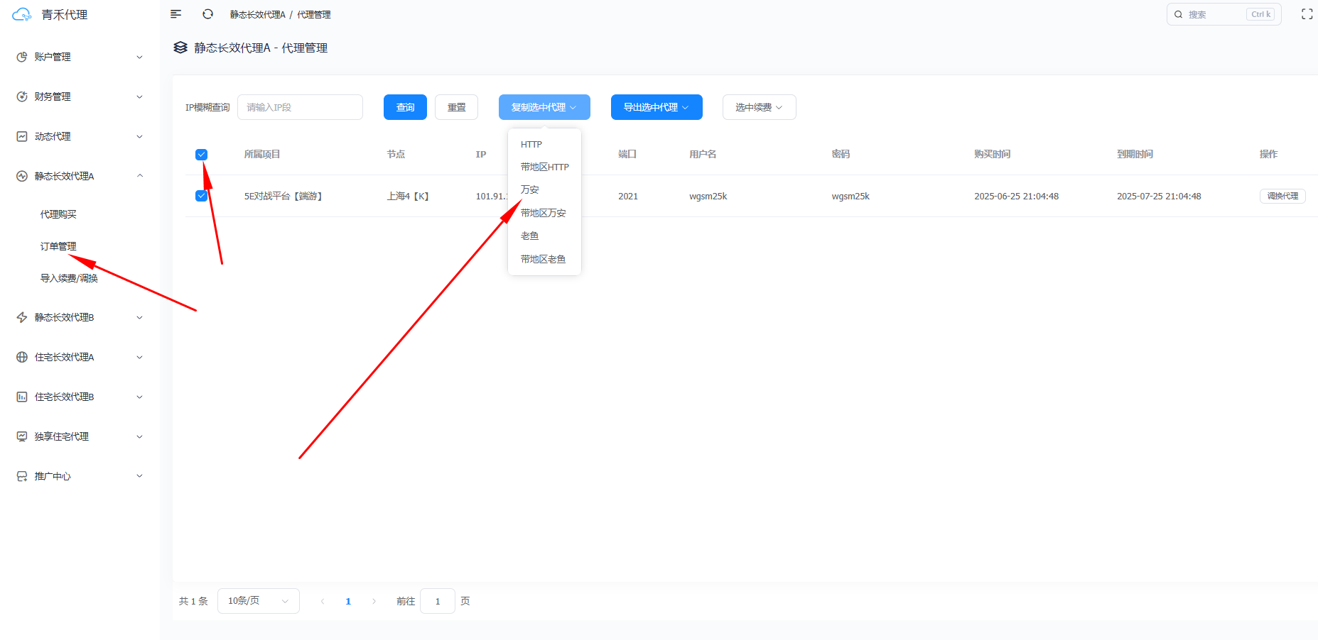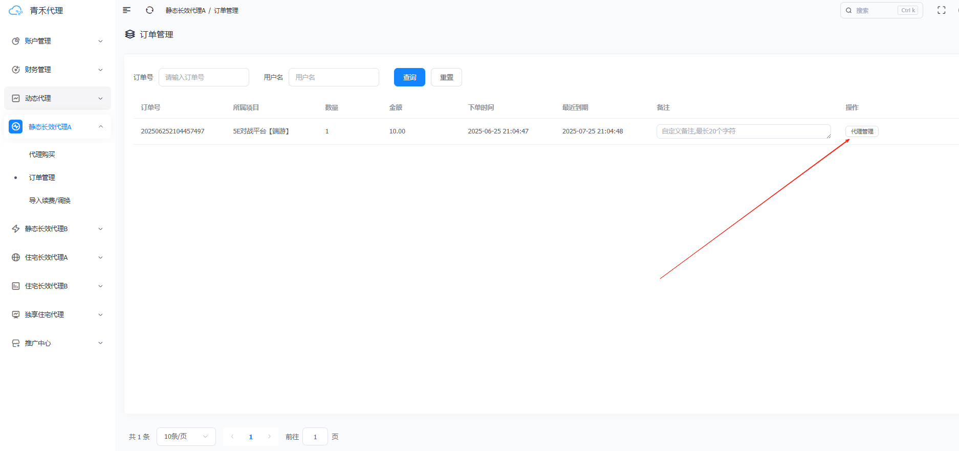 第二步:点击"静态长效代理A",点击"代理购买"