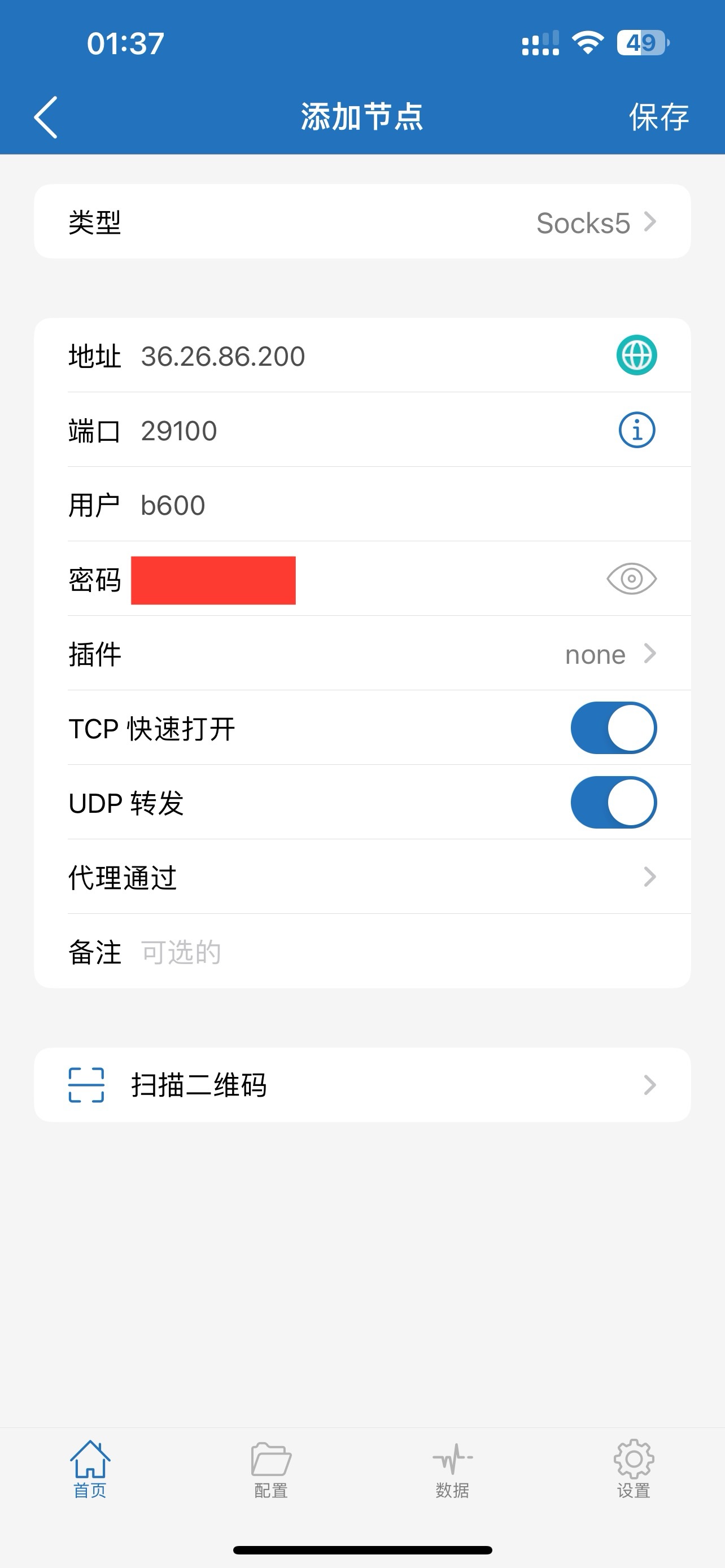 1. 打开小火箭,点击右上角加号添加代理ip